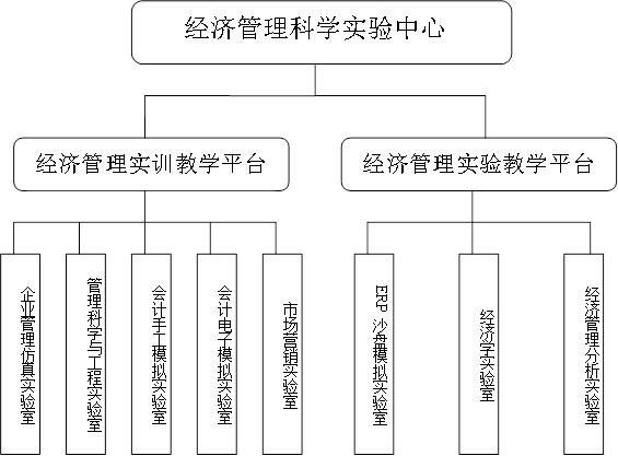 实验中心采用校、院两级管理。学校实验室管理处负责制定实验中心建设的各项政策和总体建设规划,提供教学改革与建设项目的经费,提供实验室用房和环境改善等所需经费。经济管理学院负责实验中心实验教学管理及实验室日常管理,中心设主任一名,下设各实验室负责人若干名。负责中心的规划与建设工作和日常运行管理工作。经济管理科学实验教学中心下设:金融与贸易实验室、企业管理实验室、会计手工模拟实验室和ERP沙盘模拟实验室。